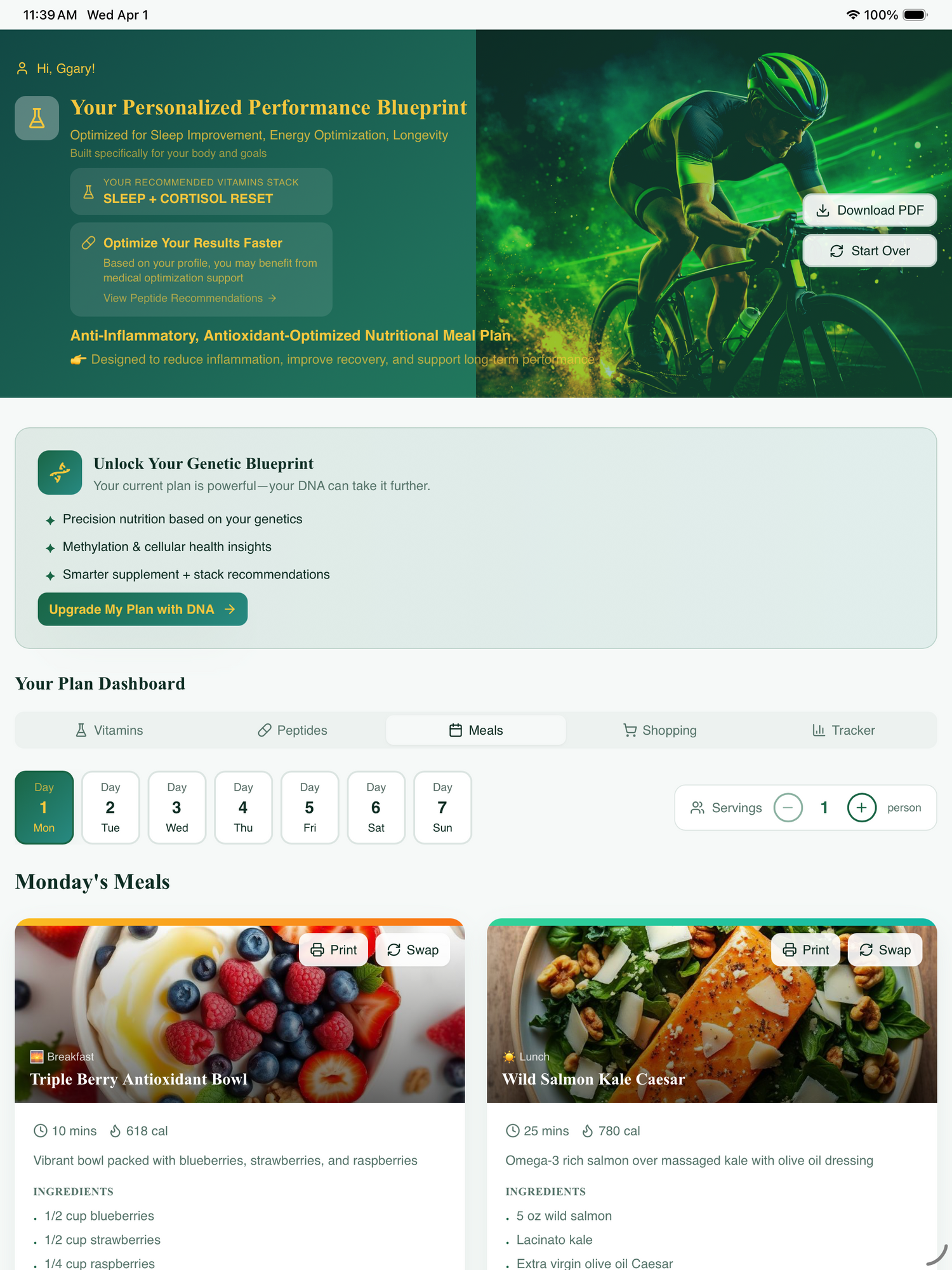Plan your nutrition with built-in meal planning, align your supplements with your goals, and optimize everything in one place.